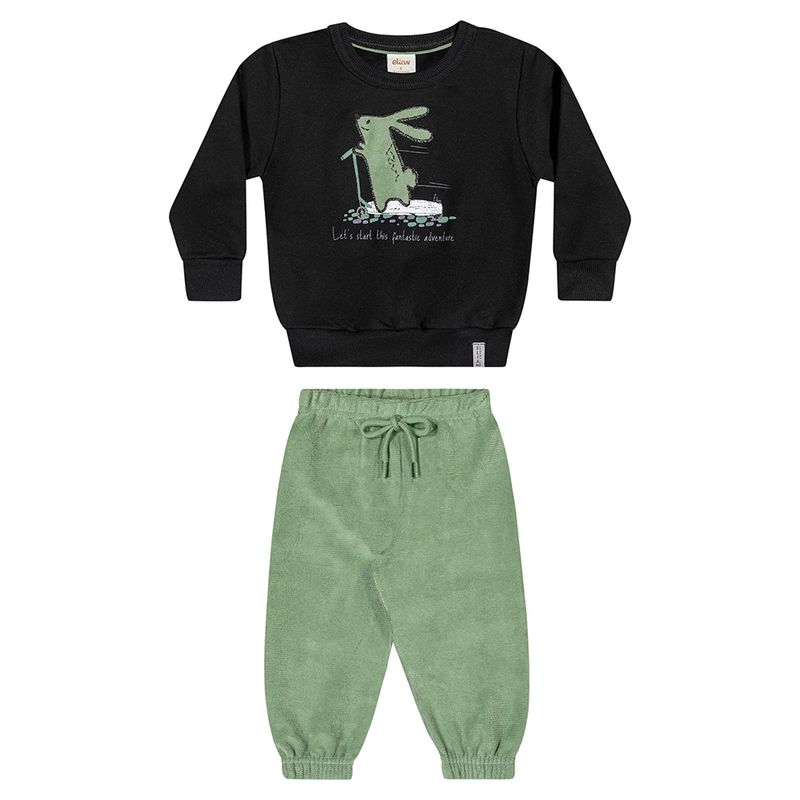 Conjunto Masculino Bebê Elian 201189 Material: MOLETOM FLANELADO/ PLUSH Manga: MANGA LONGA COM PUNHO Barra: BARRA COM PUNHO Abertura: FECHADA Bordado c/ Aplique