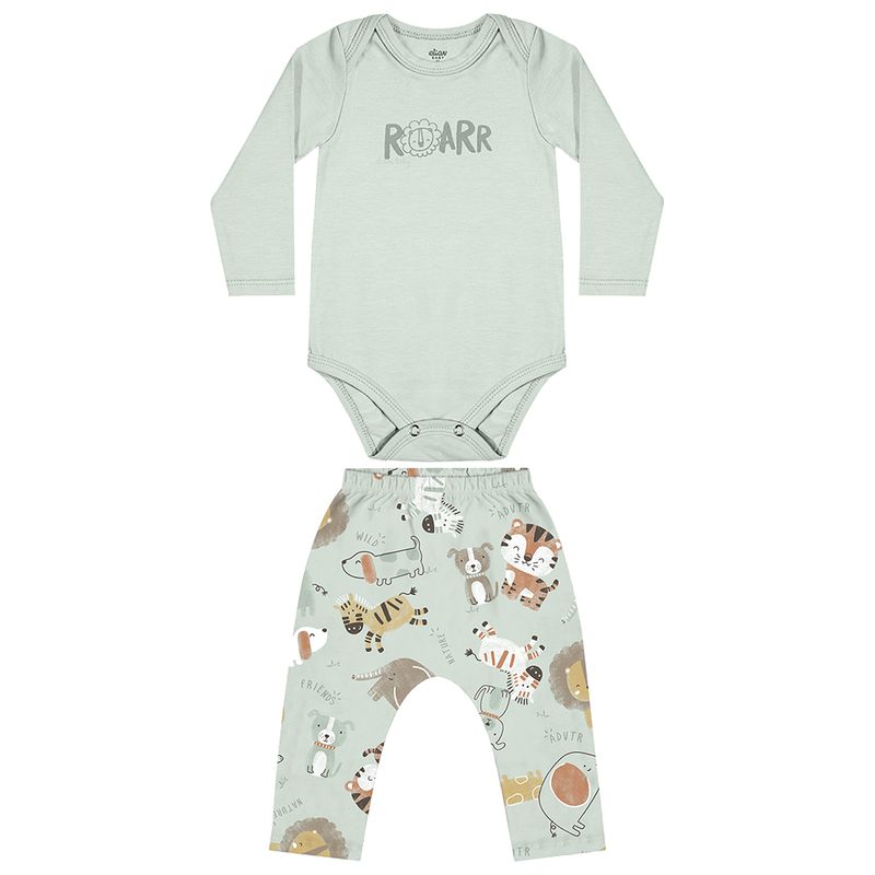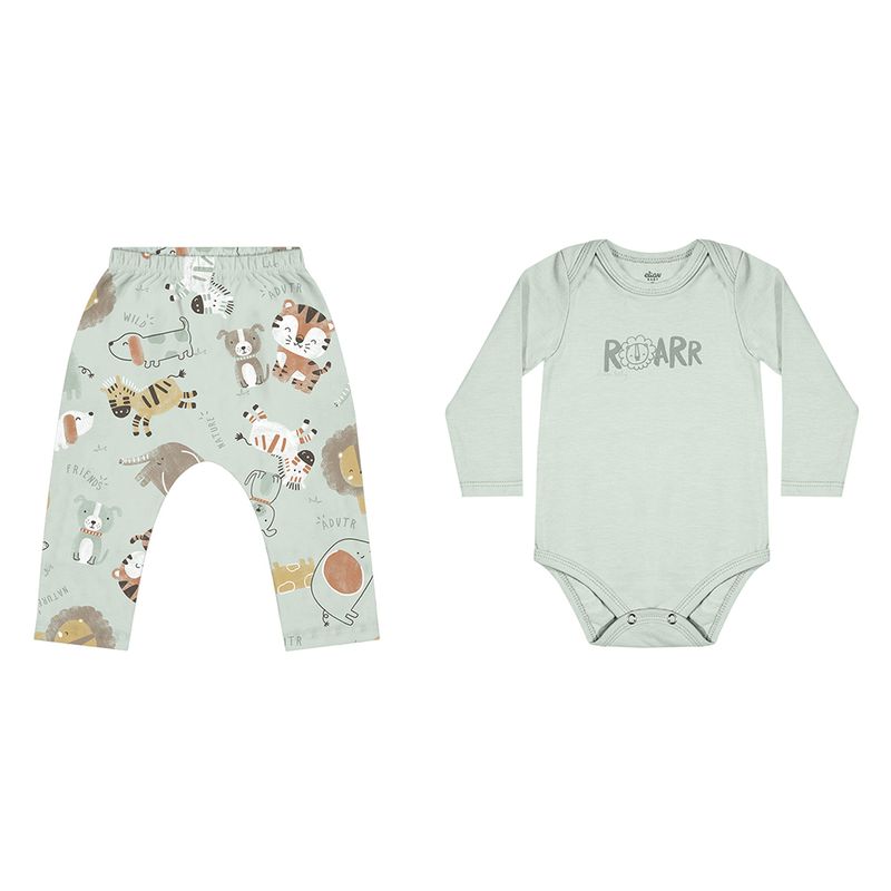 Conjunto Masculino Bebê Elian 201282 Material: COTTON LEVE Manga: MANGA LONGA SEM PUNHO Barra: BARRA TRADICIONAL Abertura: BOTAO Estampa com Puff