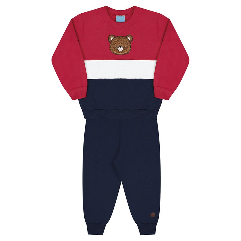 Conjunto Masculino Bebê Kamylus 43588 Material: MOLETOM PENTEADO Manga: MANGA LONGA COM PUNHO Barra: BARRA COM PUNHO Abertura: FECHADA Aplique Bordado