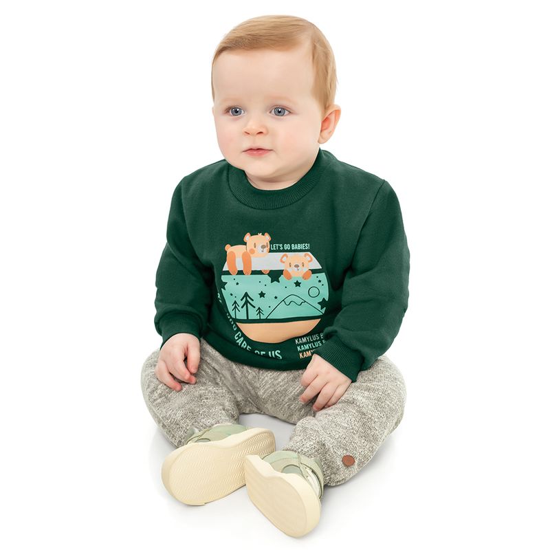 Conjunto Masculino Bebê Kamylus 43594 Material: MOLETOM PENTEADO E MOLETOM MELANGE Manga: MANGA LONGA COM PUNHO Barra: BARRA COM PUNHO Abertura: FECHADA