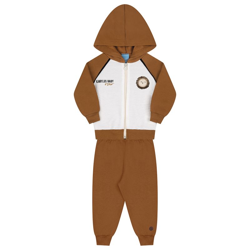 Conjunto Masculino Bebê Kamylus 43597 Material: MOLETOM PENTEADO E GORGURÃO Manga: MANGA LONGA COM PUNHO Barra: BARRA COM PUNHO Abertura: ZIPER