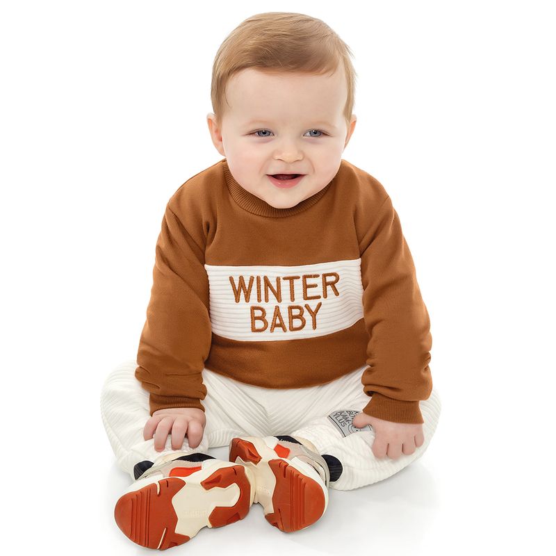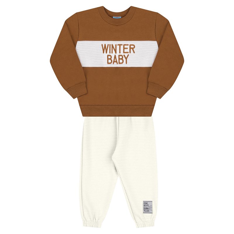 Conjunto Masculino Bebê Kamylus 43599 Material: MOLETOM PENTEADO E CALÇA GORGURÃO Manga: MANGA LONGA COM PUNHO Barra: BARRA COM PUNHO Abertura: FECHADA Bordado na Blusa