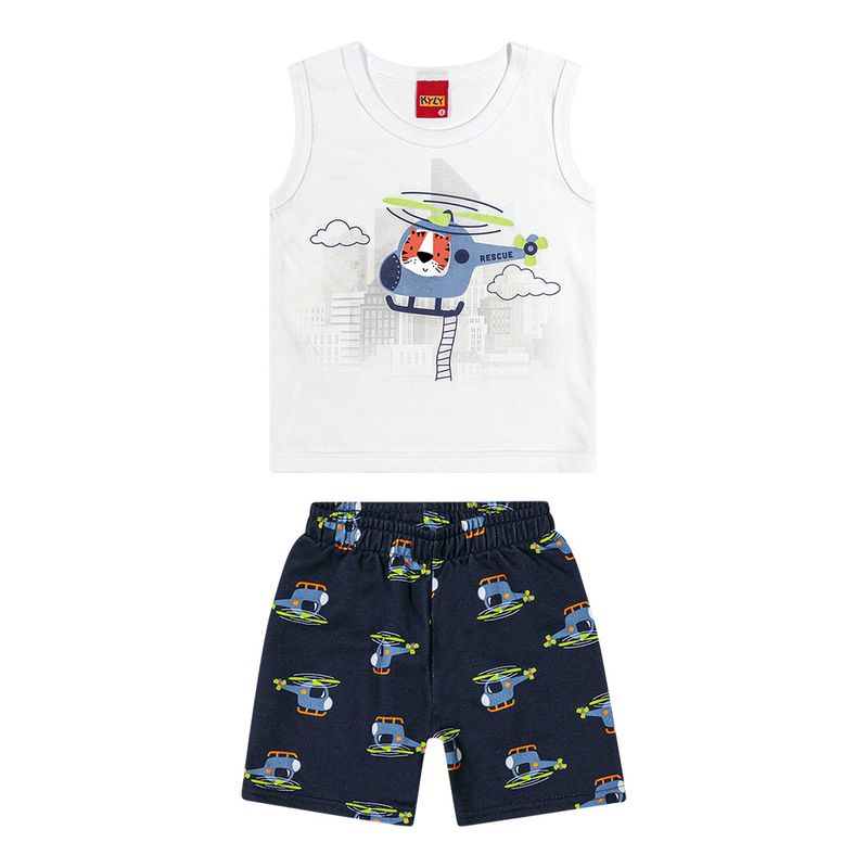 Conjunto Masculino Bebê Kyly 1000582 Material: MEIA MALHA E MOLETOM SEM FELPA Manga: REGATA Abertura: FECHADA Etiqueta com Enchimento