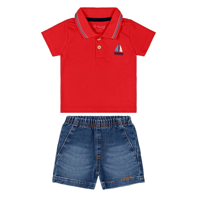 Conjunto Masculino Bebê Mundi 25901 Material:CAMISETA- M/ MALHA, BERMUDA- JEANS Manga: MANGA CURTA Barra: TRADICIONAL Abertura: FECHADA