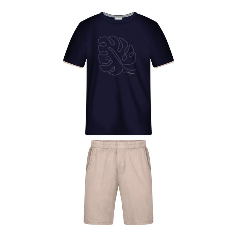 Conjunto Masculino Infantil Alakazoo 0040 Material: MEIA MALHA PENTEADA E TECIDO PLANO LINHO Manga: MANGA CURTA Abertura: FECHADA