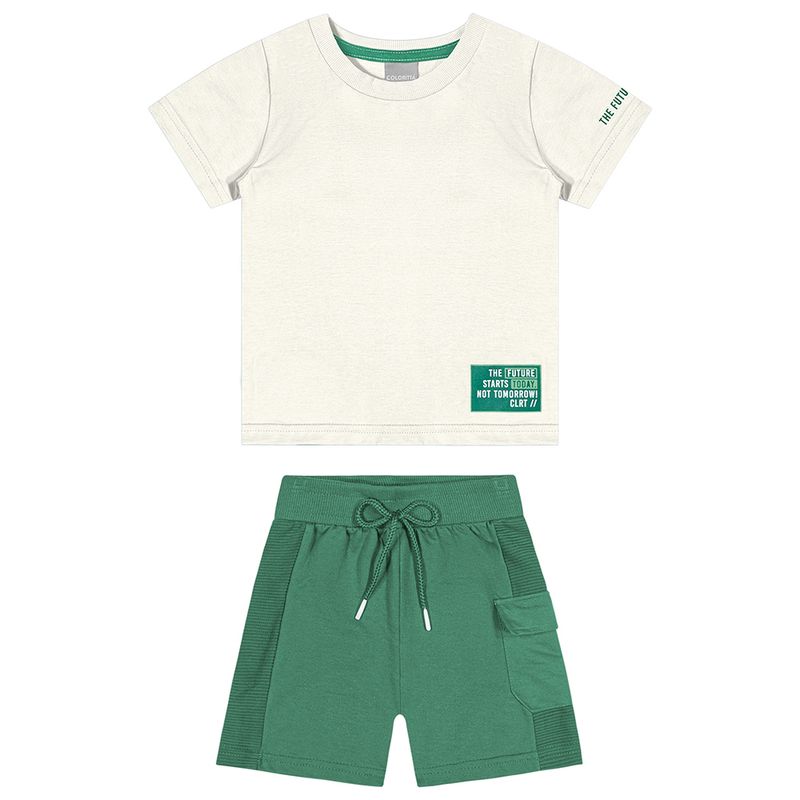 Conjunto Masculino Infantil Coloritta 72139 Material: MEIA MALHA PENTEADA, MOLETOM SEM FELPA E MOLETOM CANELADO Manga: MANGA CURTA Abertura: FECHADA Estampa com Relevo