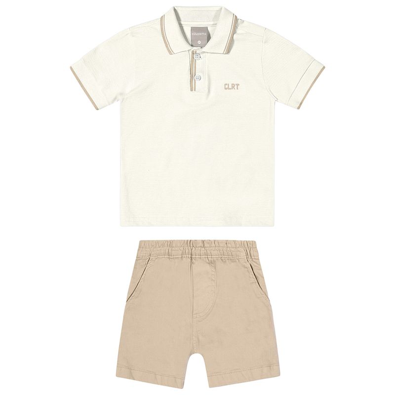 Conjunto Masculino Infantil Coloritta 72153 Material: PIQUE TRABALHADO E SARJA COM ELASTANO Manga: MANGA CURTA Abertura: FECHADA Bordado
