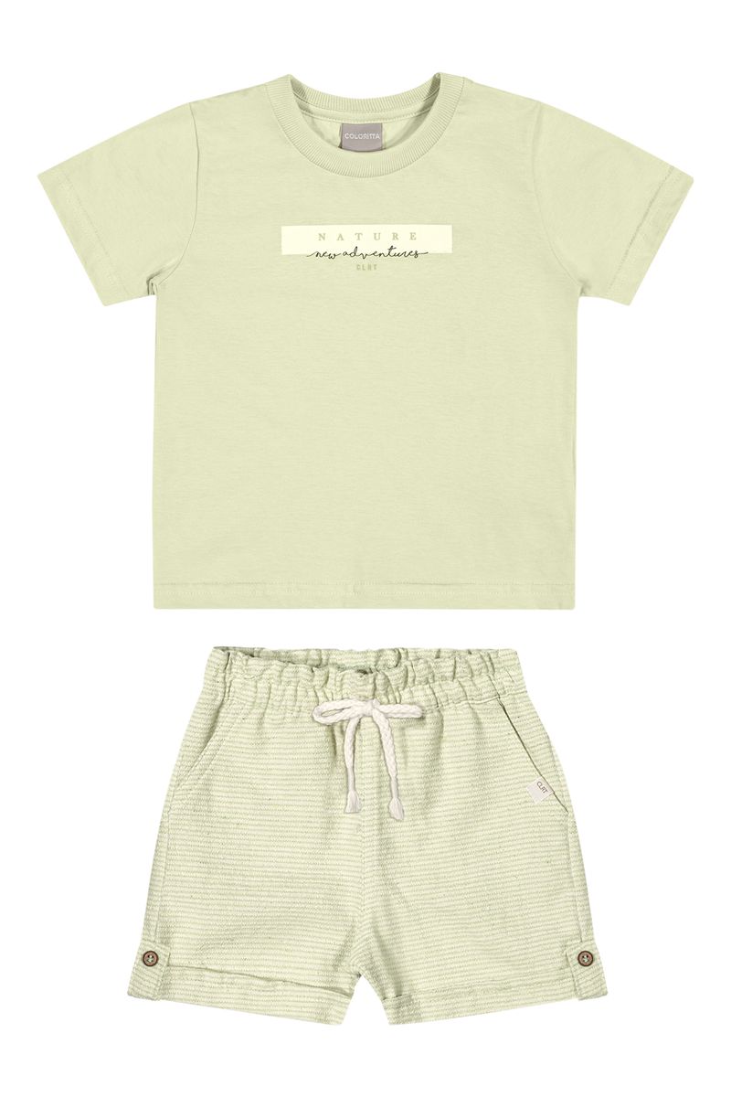 Conjunto Masculino Infantil Coloritta 72196 Material: MEIA MALHA E TECIDO LISTRADO ECO Manga: MANGA CURTA Abertura: FECHADA