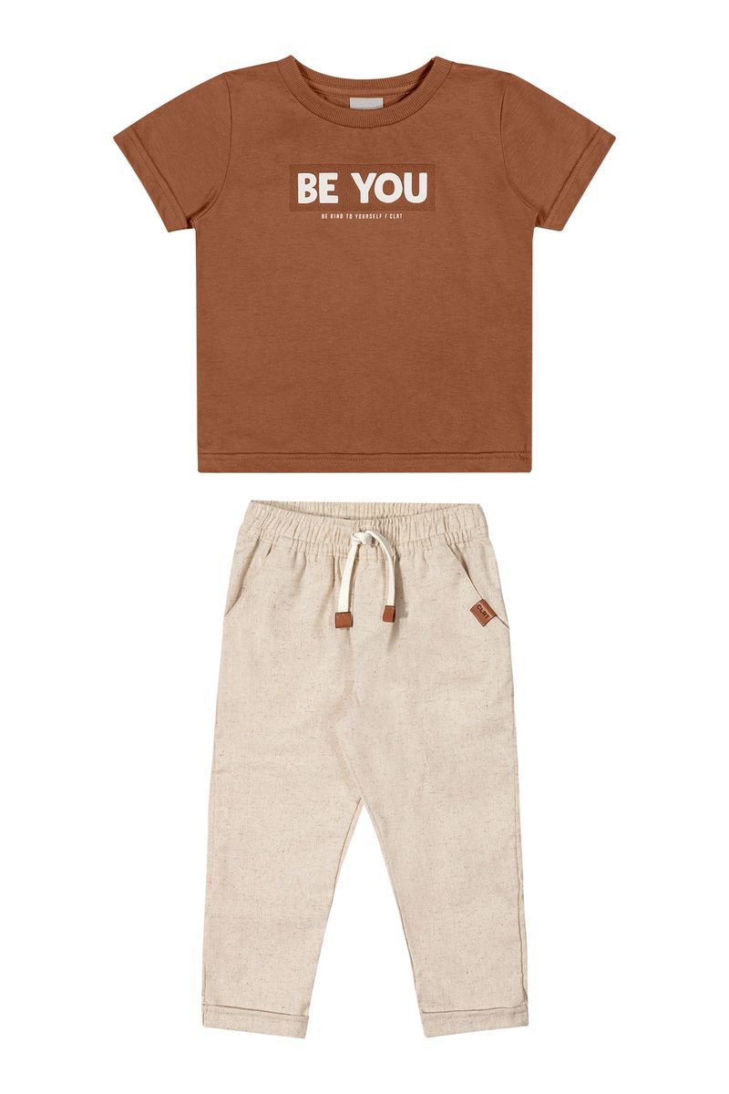 Conjunto Masculino Infantil Coloritta 72205 Material: MEIA MALHA E LINHO RÚSTICO Manga: MANGA CURTA Barra: BARRA TRADICIONAL Abertura: FECHADA Estampa com Puff