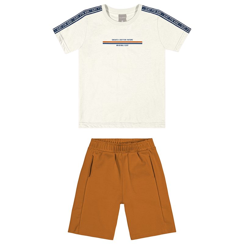 Conjunto Masculino Infantil Coloritta 74124 Material: MEIA MALHA PENTEADA E MOLETOM PONTO ROMA Manga: MANGA CURTA Abertura: FECHADA