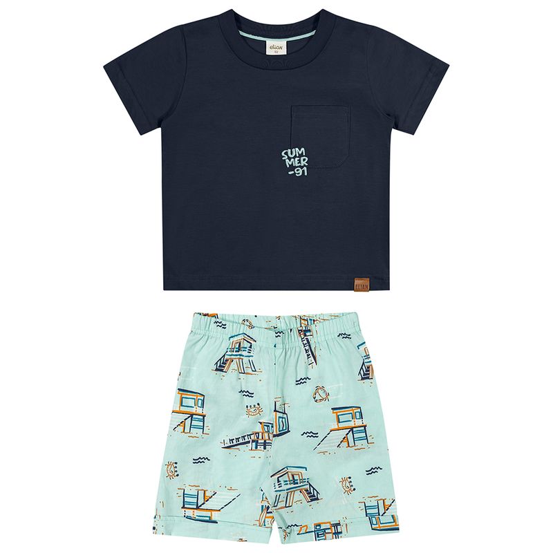 Conjunto Masculino Infantil Elian 221486 Material: MEIA MALHA PENTEADA E TRICOLINE COM ELASTANO Manga: MANGA CURTA Abertura: FECHADA Bordado