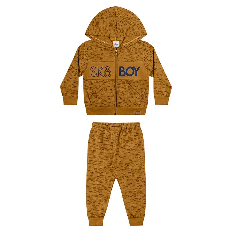 Conjunto Masculino Infantil Elian 221538 Material: MOLETOM FELPADO Manga: MANGA LONGA COM PUNHO Barra: BARRA COM PUNHO Abertura: ZIPER Estampa com Puff