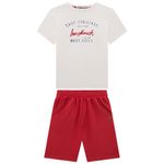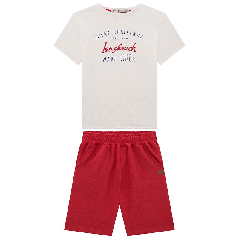 Conjunto Masculino Infantil Ioluigi 35059 Material: MEIA MALHA FLAMÊ E MALHA ALFAIATARIA Manga: MANGA CURTA Abertura: FECHADA Estampa e Bordado com Proteção