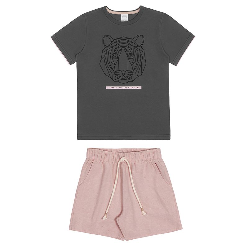 Conjunto Masculino Juvenil Alakazoo 39435 Material: MEIA MALHA PENTEADA E TECIDO ECOTEX Manga: MANGA CURTA Abertura: FECHADA
