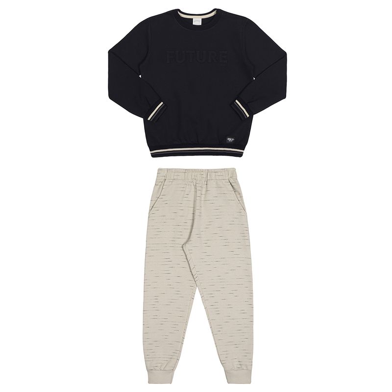 Conjunto Masculino Juvenil Alakazoo 66550 Material: MOLETOM FELPADO E MOLETOM FLAME JET Manga: MANGA LONGA COM PUNHO Barra: BARRA COM PUNHO Abertura: FECHADA Bordado na Blusa