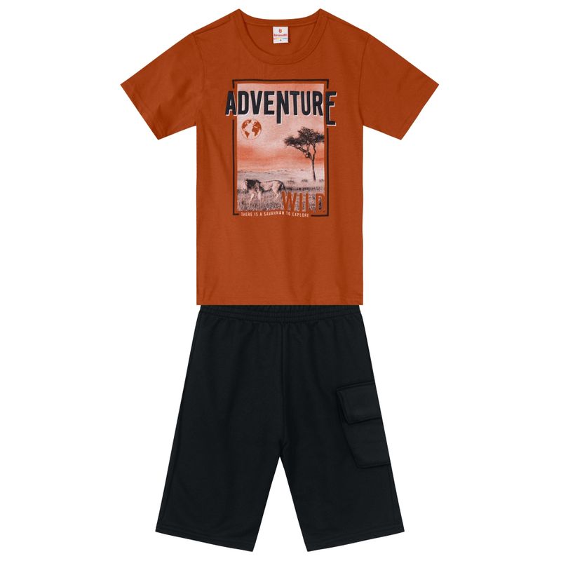 Conjunto Masculino Juvenil Brandili 26015 Material: MEIA MALHA E MOLETINHO Manga: MANGA CURTA Abertura: FECHADA Estampa com Relevo