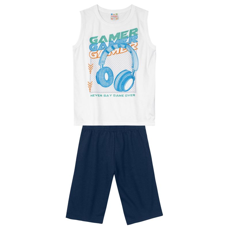 Conjunto Masculino Juvenil Brandili 26044 Material: MEIA MALHA E MOLETINHO Manga: REGATA Abertura: FECHADA Estampa Metalizada