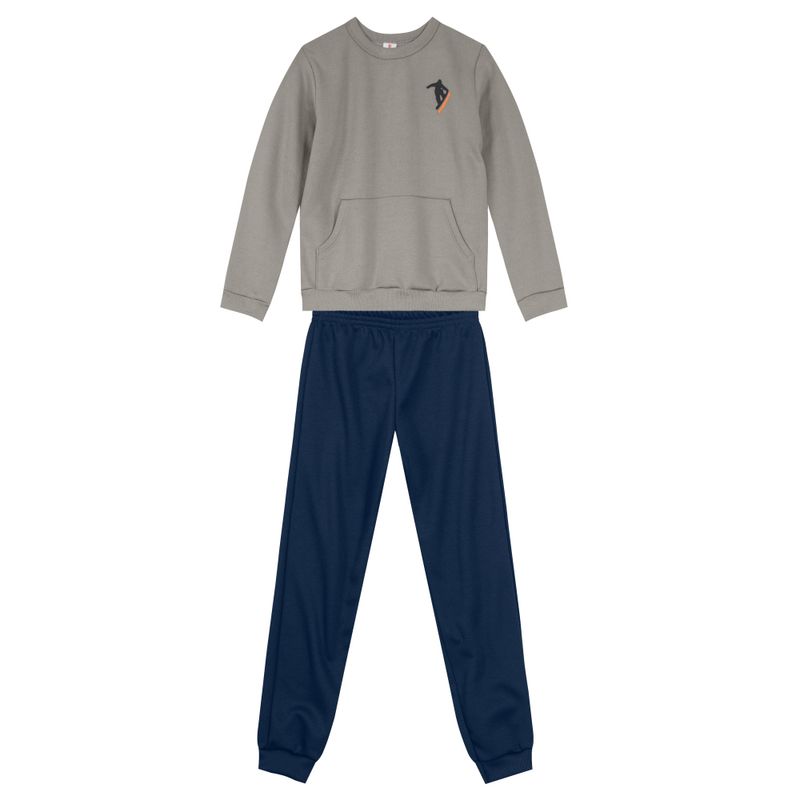 Conjunto Masculino Juvenil Brandili 55451 Material: MOLETOM Manga: MANGA LONGA COM PUNHO Barra: BARRA COM PUNHO Abertura: FECHADA Aplique Termocolante
