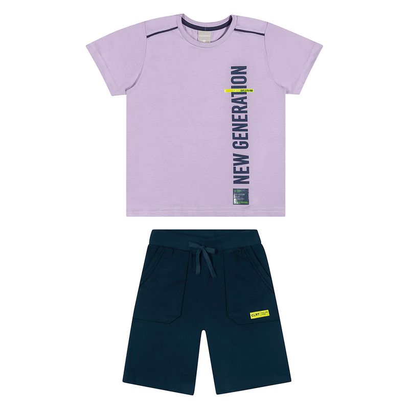 Conjunto Masculino Juvenil Elian Coloritta 74029 Material: CAMISETA- MALHA/ BERMUDA- MOLETOM S/ FELPA Manga: MANGA CURTA Estampa c/ Relevo