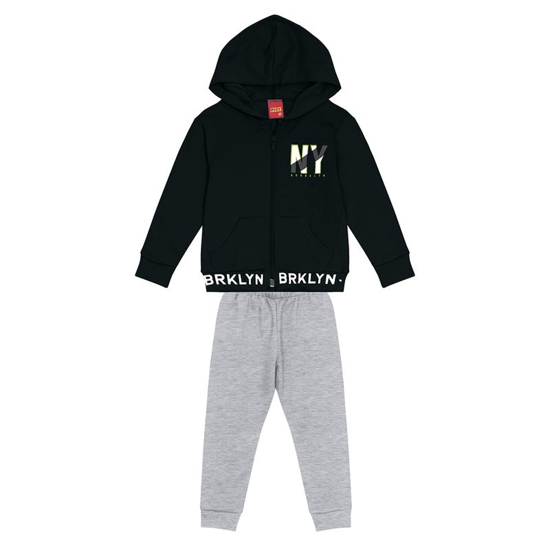 Conjunto Masculino Juvenil Kyly 1000132 Material: MOLETOM FELPADO Manga: MANGA LONGA COM PUNHO Barra: BARRA COM PUNHO Abertura: ZIPER Estampa c/ Relevo