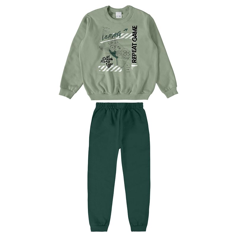 Conjunto Masculino Juvenil Malwee 116770 Material: MOLETOM FLANELADO Manga: MANGA LONGA COM PUNHO Barra: BARRA COM PUNHO Abertura: FECHADA Modelagem Jogger