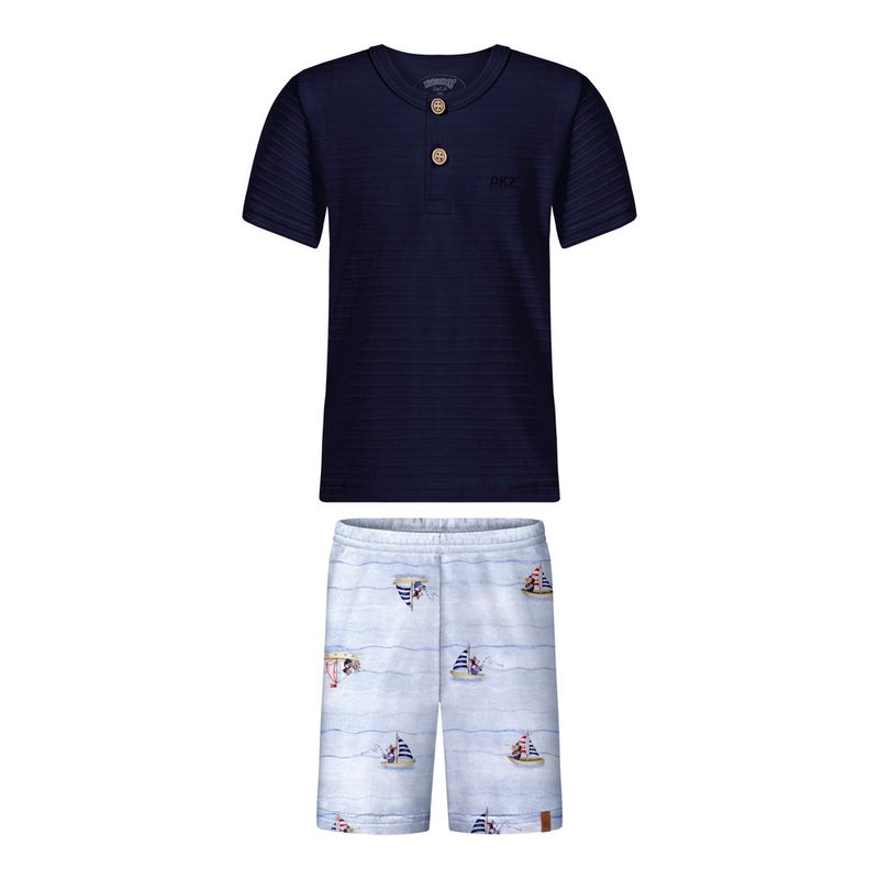 Conjunto Masculino Primeiros Passos Alakazoo 0055 Material: MALHA LISTRADA TEXTURIZADA E MOLETOM Manga: MANGA CURTA Abertura: FECHADA Bordado