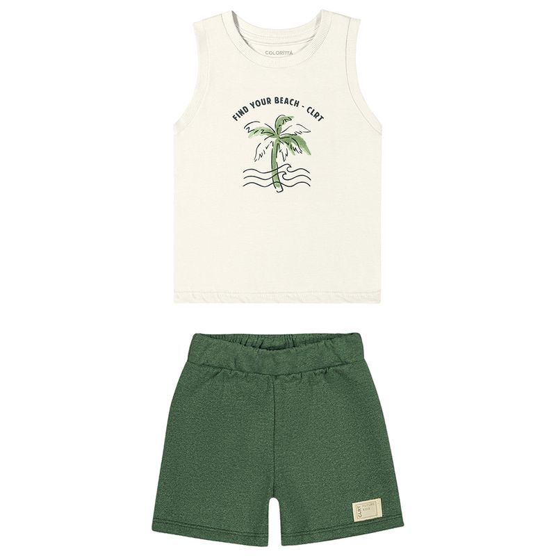 Conjunto Masculino Primeiros Passos Coloritta 70103 Material: MEIA MALHA PENTEADA E MOLETOM MOULINÊ Manga: REGATA Abertura: FECHADA Estampa com Relevo
