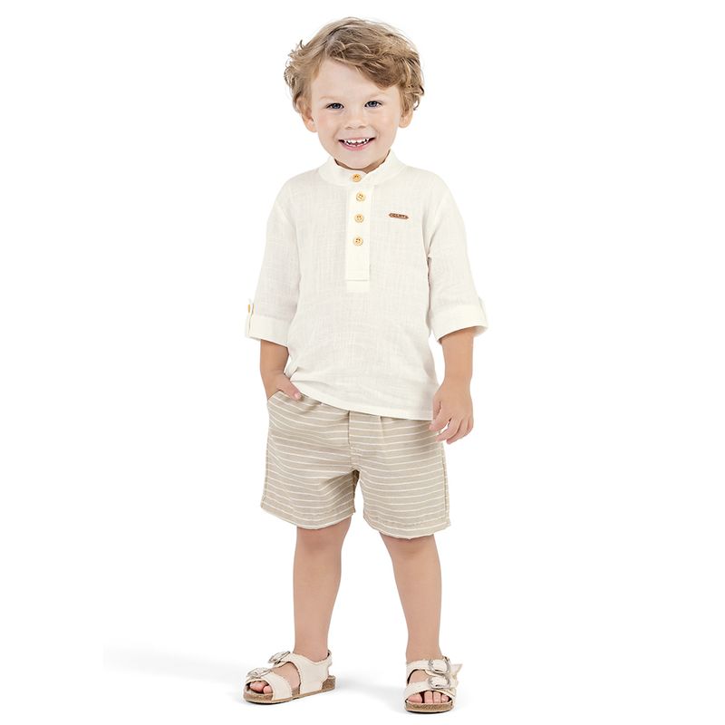 Conjunto Masculino Primeiros Passos Coloritta 72150 Material: VISCOLINHO E TECIDO ECO LISTRADO Manga: MANGA CURTA Barra: Abertura: FECHADA