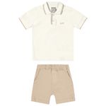 Conjunto Masculino Primeiros Passos Coloritta 72153 Material: PIQUE TRABALHADO E SARJA COM ELASTANO Manga: MANGA CURTA Abertura: FECHADA Bordado