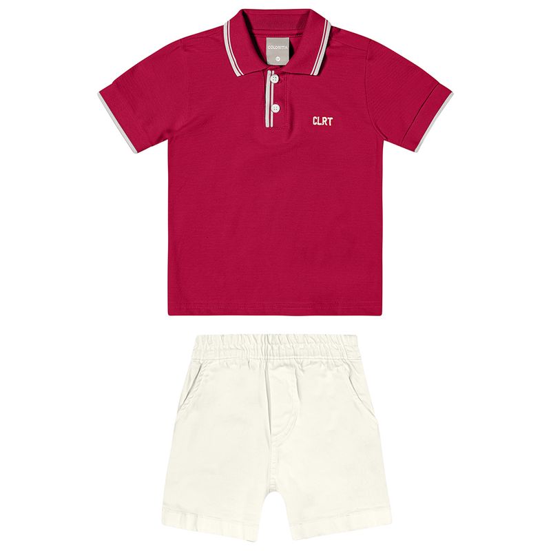 Conjunto Masculino Primeiros Passos Coloritta 72153 Material: PIQUE TRABALHADO E SARJA COM ELASTANO Manga: MANGA CURTA Abertura: FECHADA Bordado