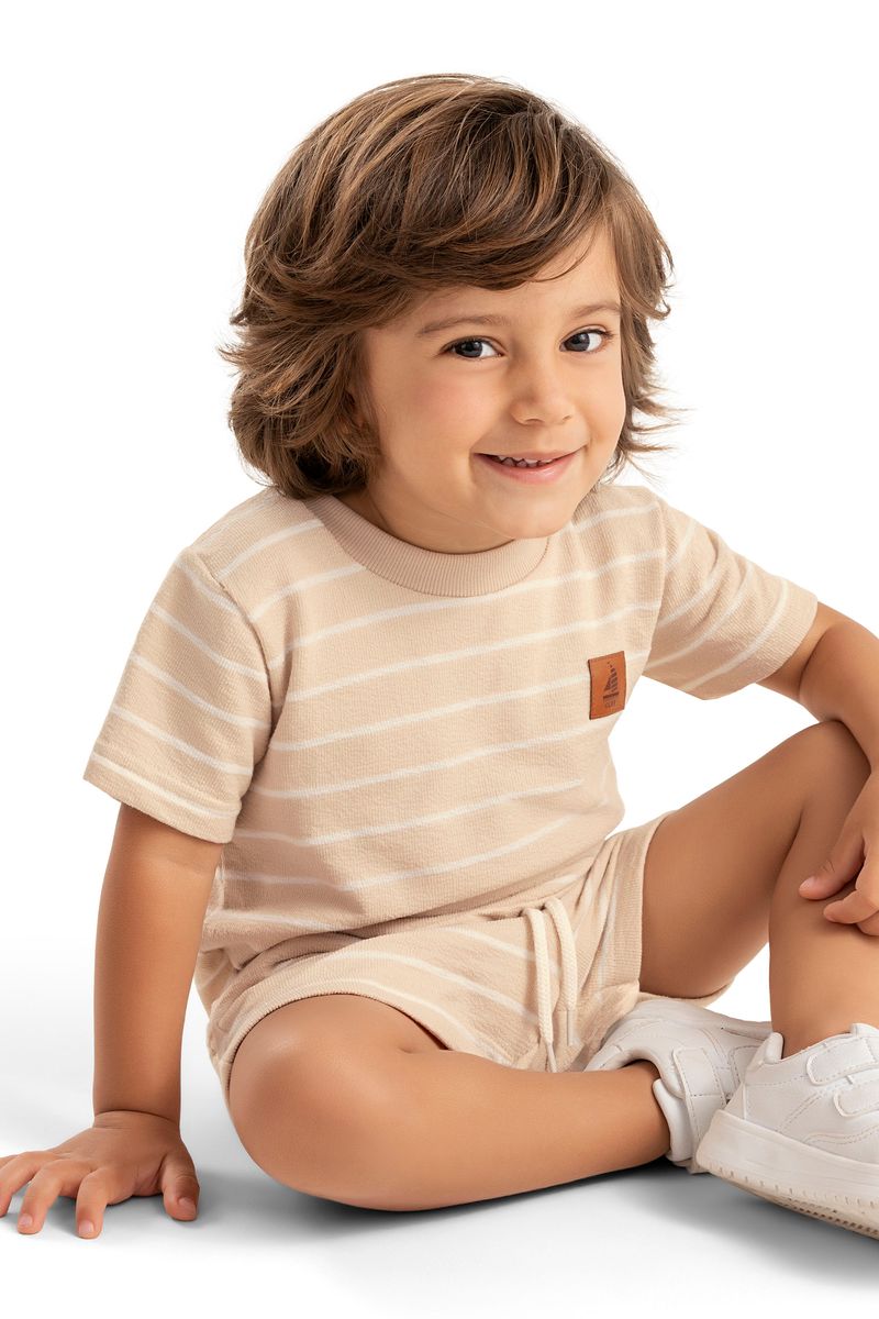 Conjunto Masculino Primeiros Passos Coloritta 72204 Material: MOLETINHO TEXTURIZADO LISTRADO Manga: MANGA CURTA Abertura: FECHADA