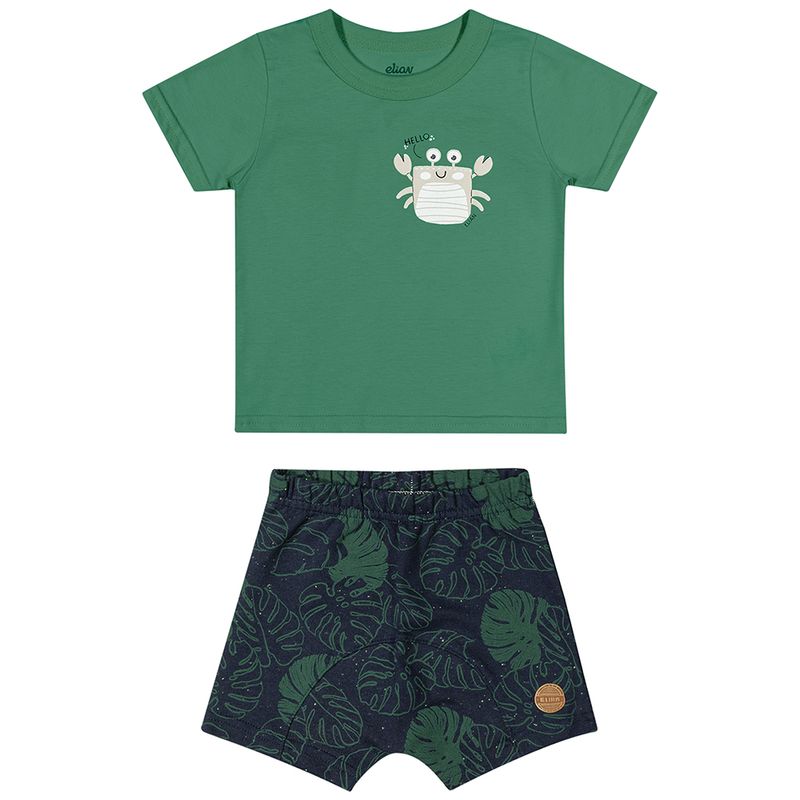 Conjunto Masculino Primeiros Passos Elian 201236 Material: MEIA MALHA PENTEADA E MOLETOM BOTONÊ Manga: MANGA CURTA Abertura: FECHADA Estampa com Puff