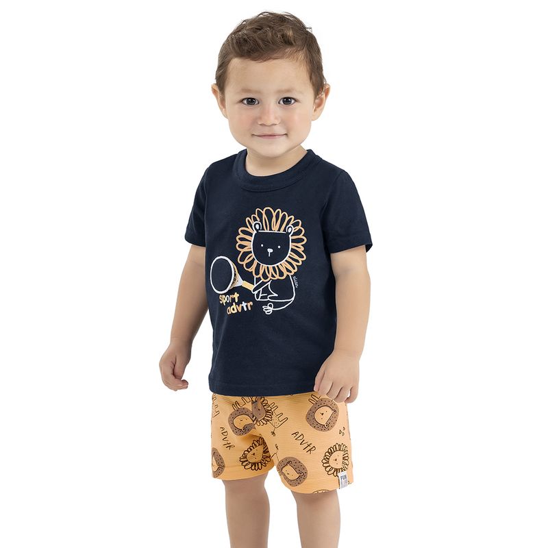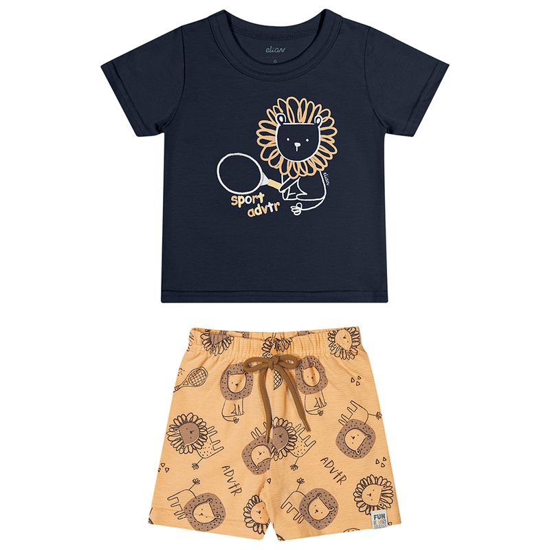 Conjunto Masculino Primeiros Passos Elian 201251 Material: MEIA MALHA PENTEADA E MALHA DE ALGODÃO TEXTURIZADA Manga: MANGA CURTA Abertura: FECHADA Aplique Bordado Interativo