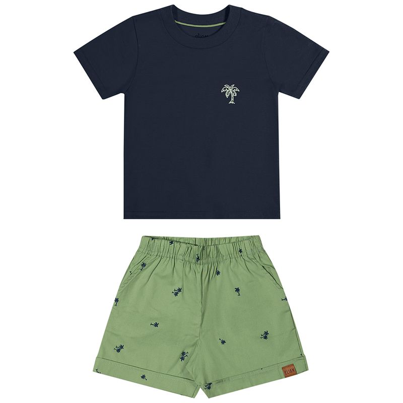 Conjunto Masculino Primeiros Passos Elian 201259 Material: MEIA MALHA PENTEADA E TRICOLINE COM ELASTANO Manga: MANGA CURTA Abertura: FECHADA Estampa com Puff