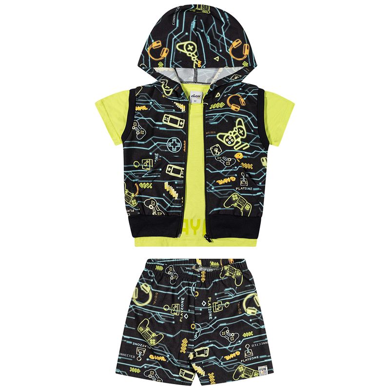Conjunto Masculino Primeiros Passos Elian 221507 Material: MEIA MALHA PENTEADA E TACTEL Manga: MANGA CURTA Abertura: ZIPER