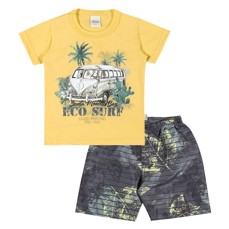 Conjunto Masculino Primeiros Passos Elian com Camiseta em Meia Malha Penteada e Bermuda Tactel
