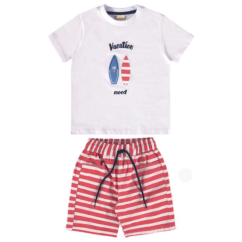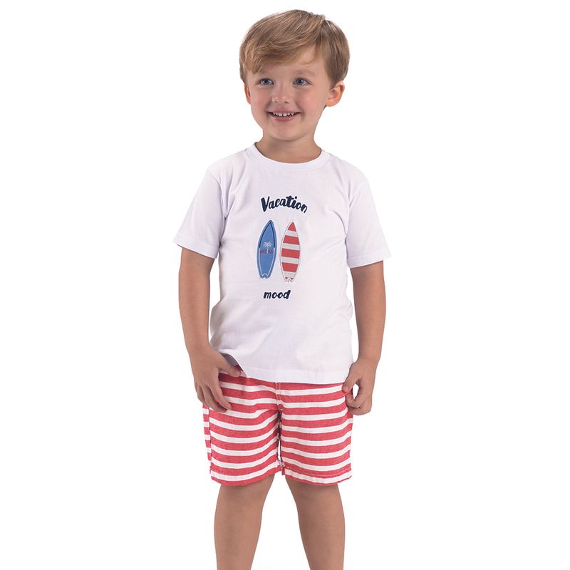 Conjunto Masculino Primeiros Passos Have Fun 29247 Material: MEIA MALHA E TECIDO LISTRADO ECO Manga: MANGA CURTA Abertura: FECHADA