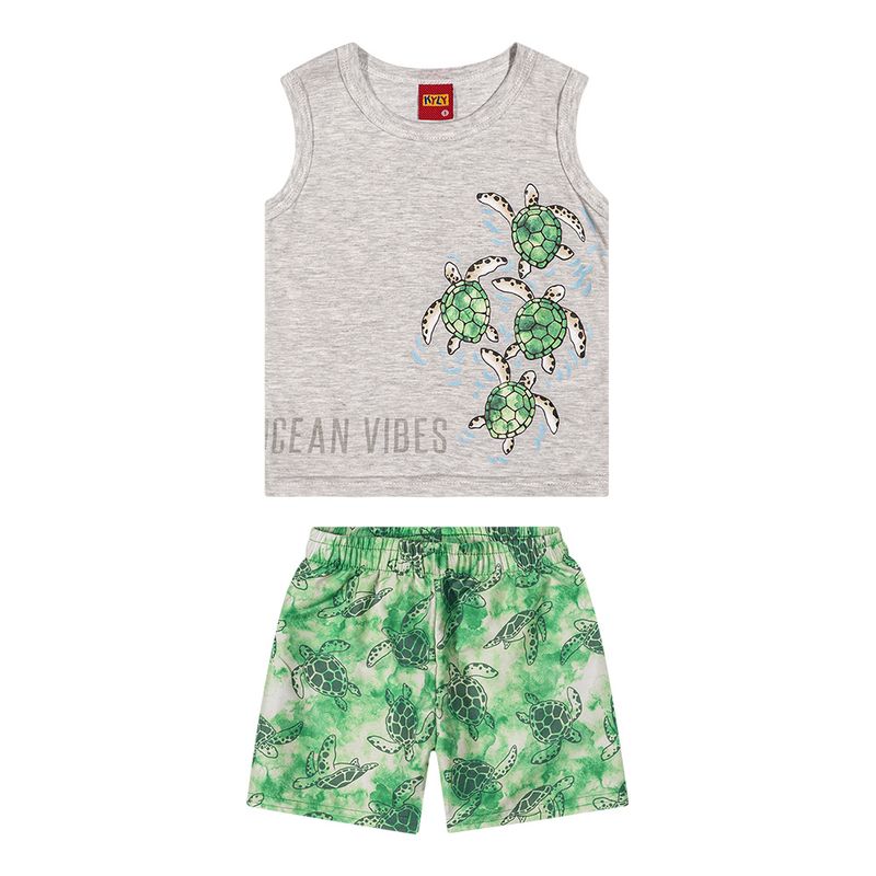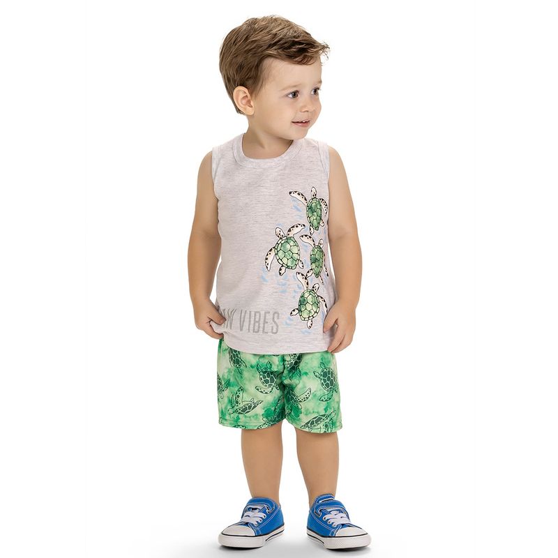 Conjunto Masculino Primeiros Passos Kyly 1000580 Material: MEIA MALHA E MICROFIBRA Manga: REGATA Abertura: FECHADA