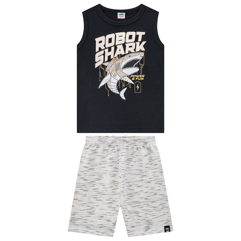 Conjunto Masculino Primeiros Passos Marlan 62814 Material: MEIA MALHA PENTEADA E MOLETINHO JET Manga: REGATA Abertura: FECHADA Estampa com Foil