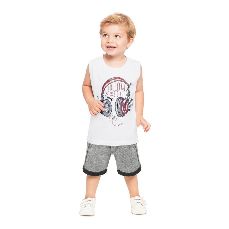 Conjunto Regata e Bermuda Masculina Alakazoo em Meia Malha Penteada e Moletom Linen