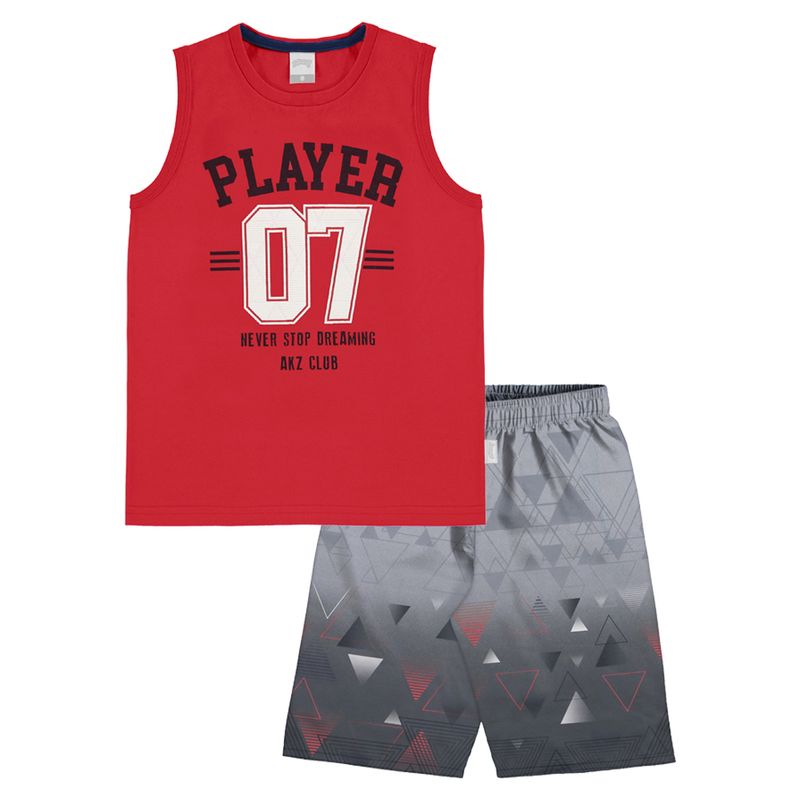 Conjunto Regata e Bermuda Masculina Juvenil Alakazoo em Meia Malha Penteada e Tecido Politel