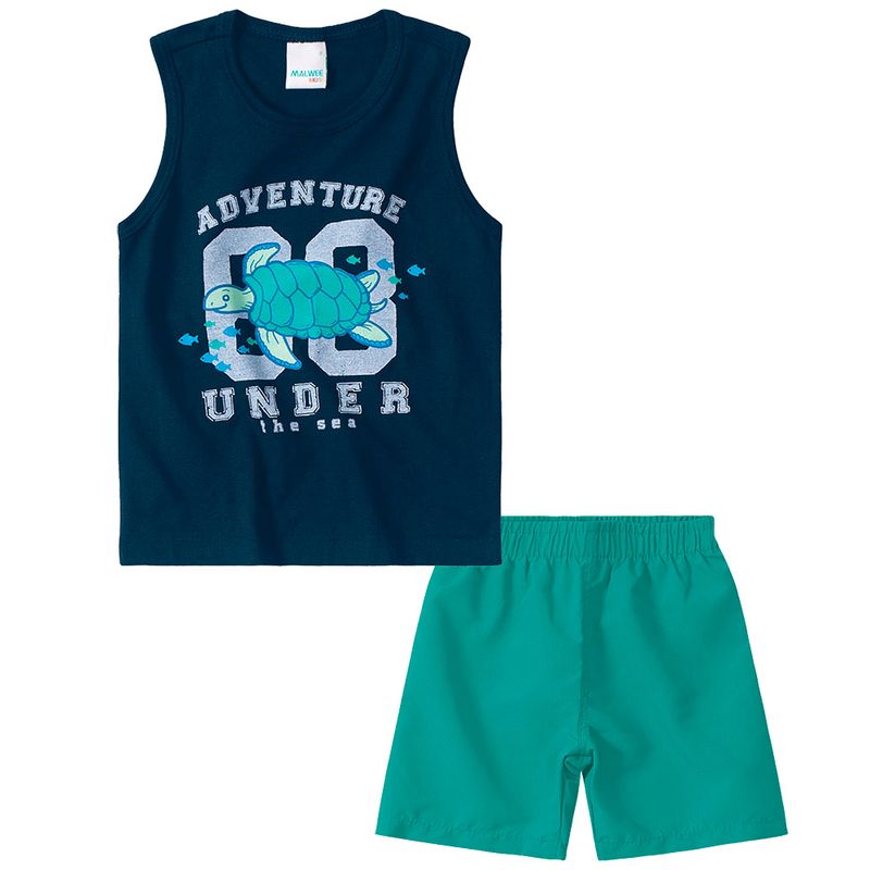 Conjunto Regata e Bermuda Masculina Malwee de Meia Malha / Microfibra Surf