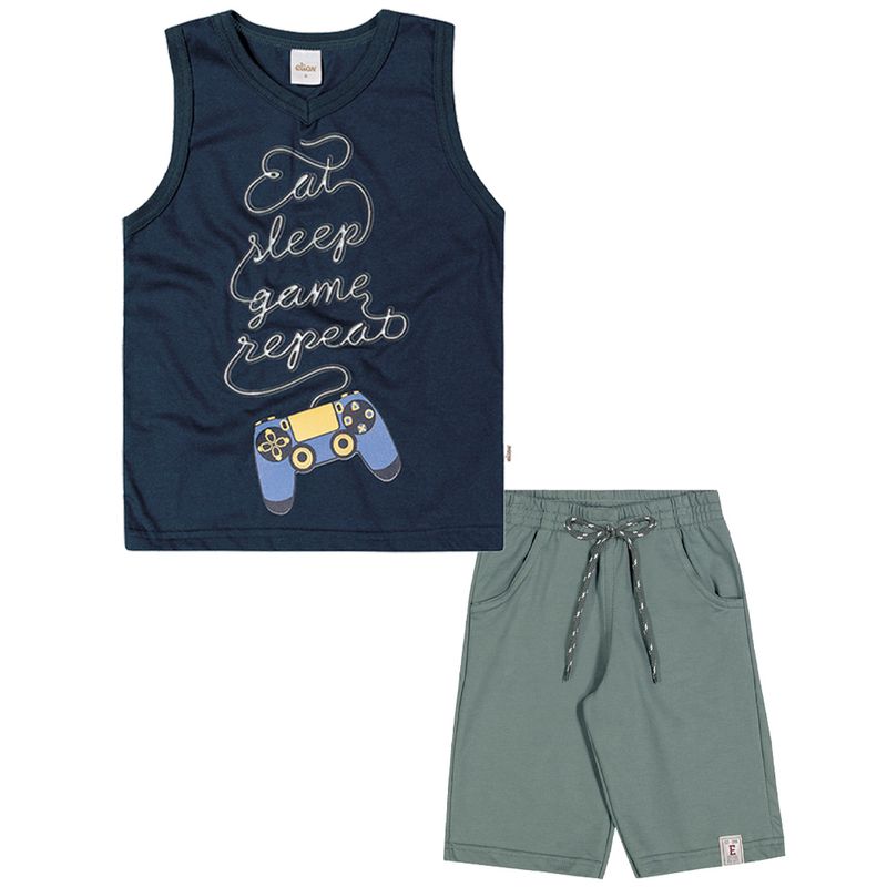 TeenRoupasConjuntosConjunto de verãoConjunto Regata Game e Bermuda em Moletinho Masculina Juvenil Elian