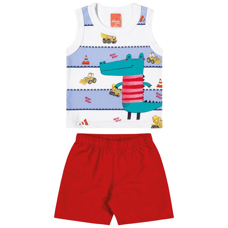Conjunto Regata Jacaré e Bermuda Tactel Bebê Elian em Meia Malha Penteada e Tactel