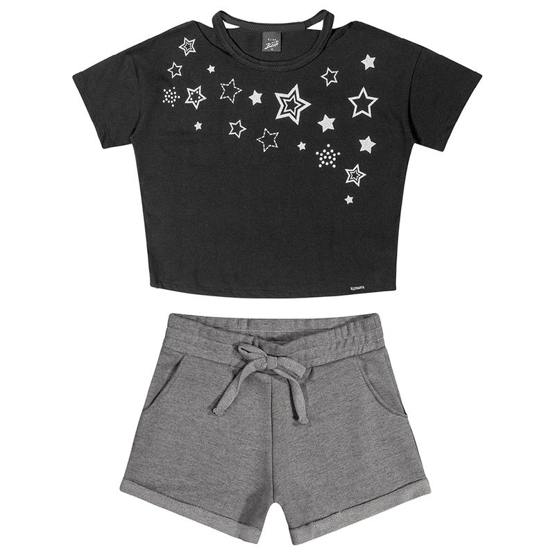 Conjunto Stars Blusa e Shorts Feminino Juvenil Elian Beats em Meia Malha Penteada e Moletom Fleece