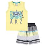 Conjunto Tubarão Regata e Bermuda Masculina Alakazoo em Meia Malha Penteada e Tecido Politel