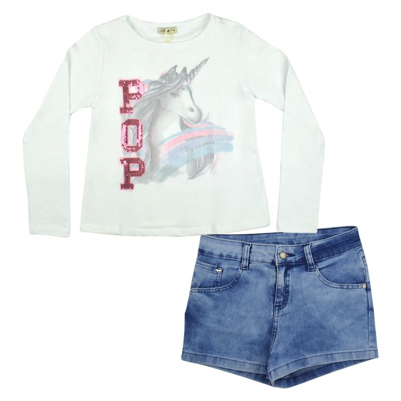 Conjunto Unicórnio com Shorts Jeans Juvenil Lilysky