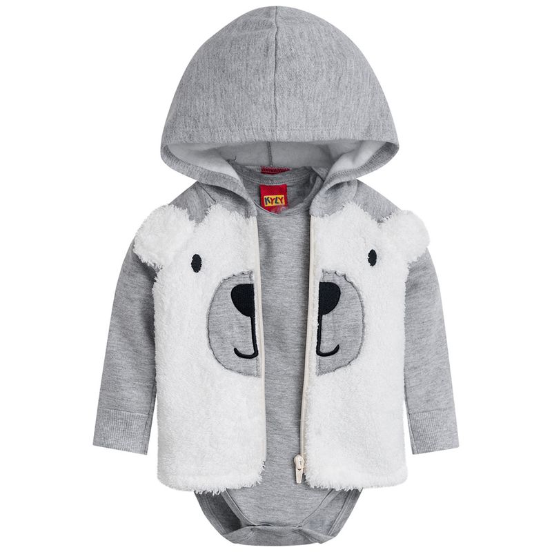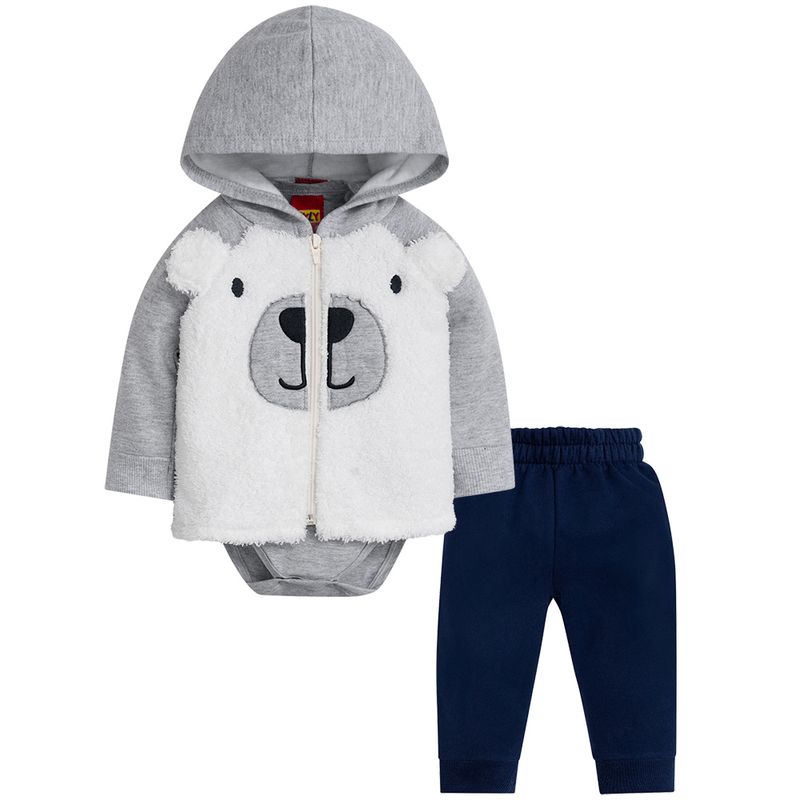 Conjunto Urso Jaqueta, Body e Calça Bebê Kyly / em Algodão e Moletom Peluciado