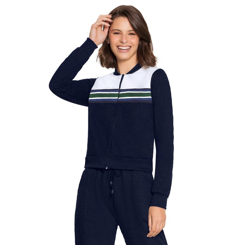 Jaqueta Feminina Adulto Lunender em Moletom Felpado e Malha Wave