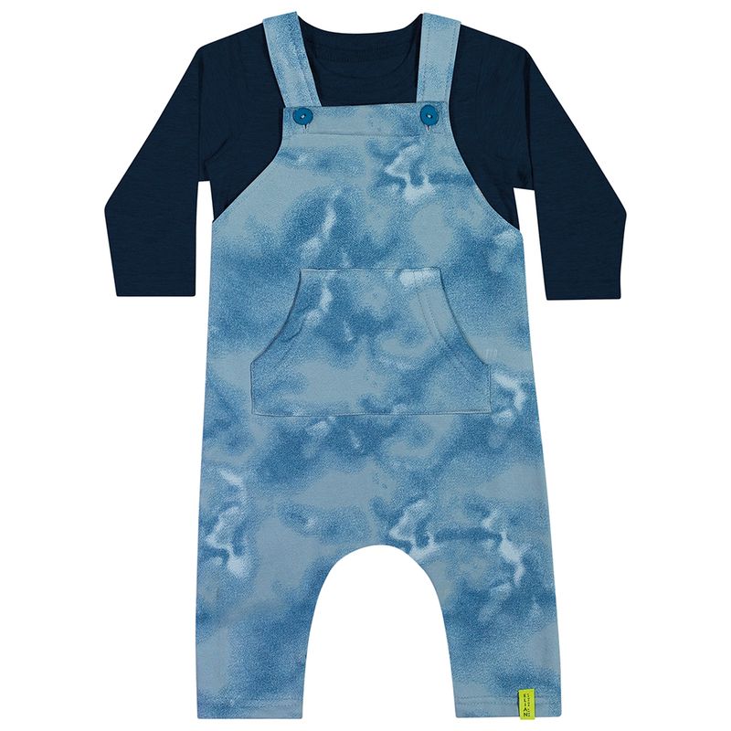 Jardineira e Camiseta de Menino Bebê Elian em Meia Malha Penteada e Moletom Felpado